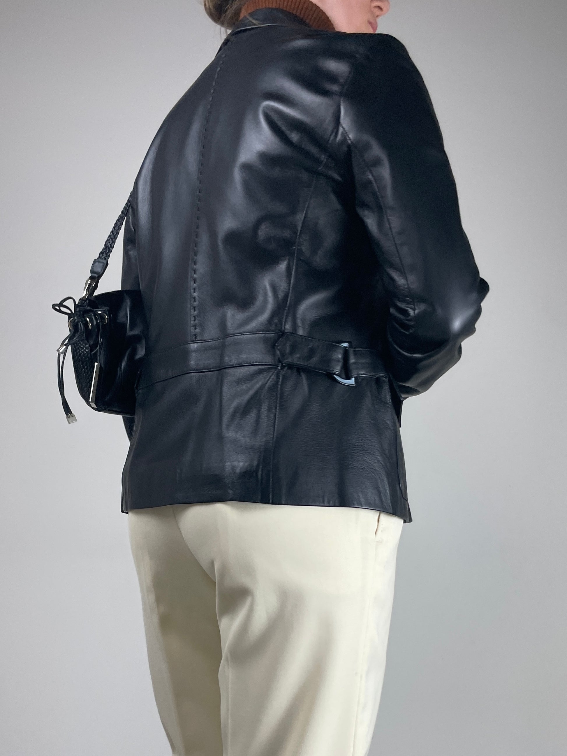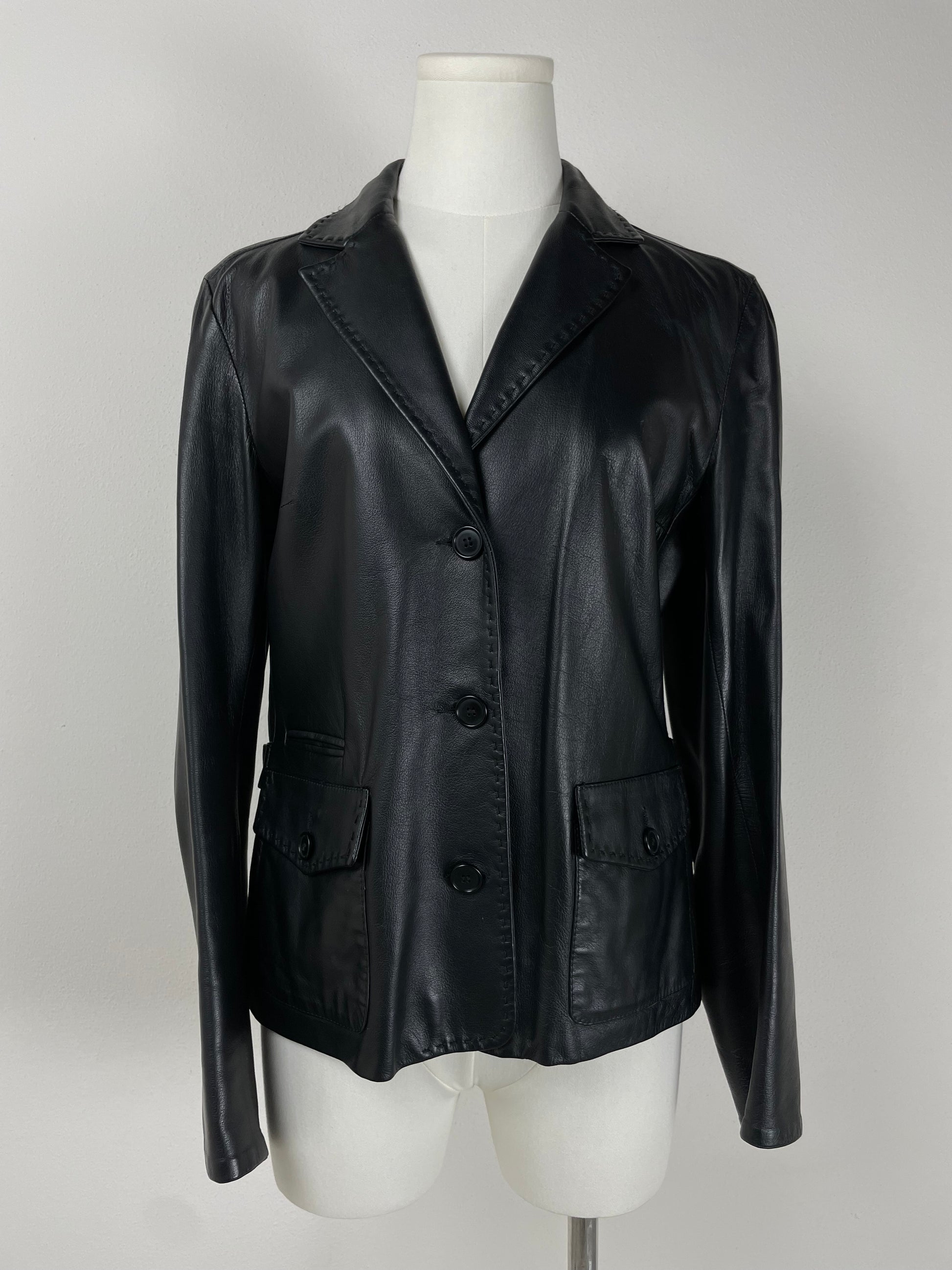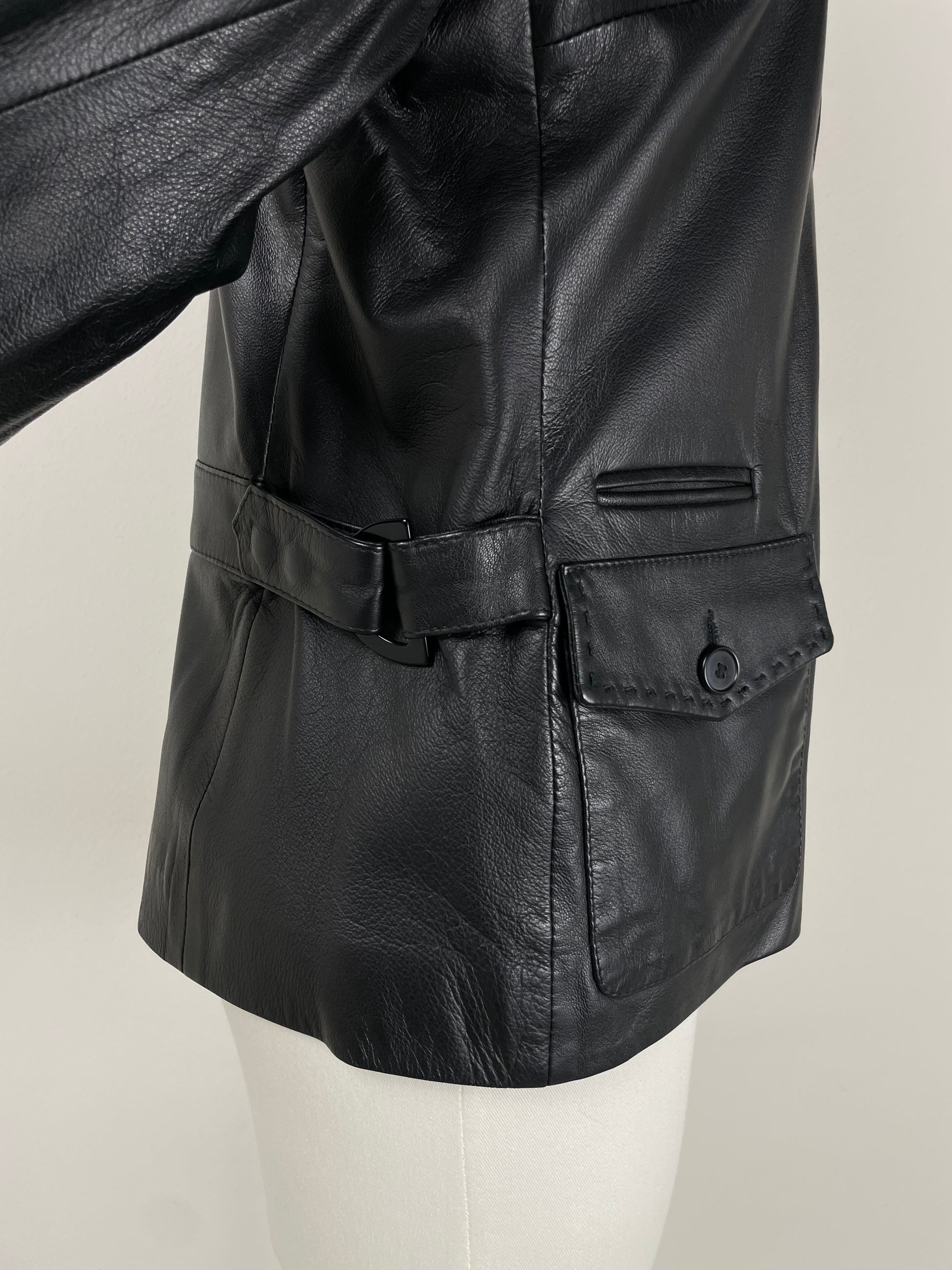 Blazer in vera pelle nera, vintage, di lusso, Made in Italy, realizzato in morbidissima lambskin di altissima qualità, con taglio sartoriale e finiture curate nei minimi dettagli.