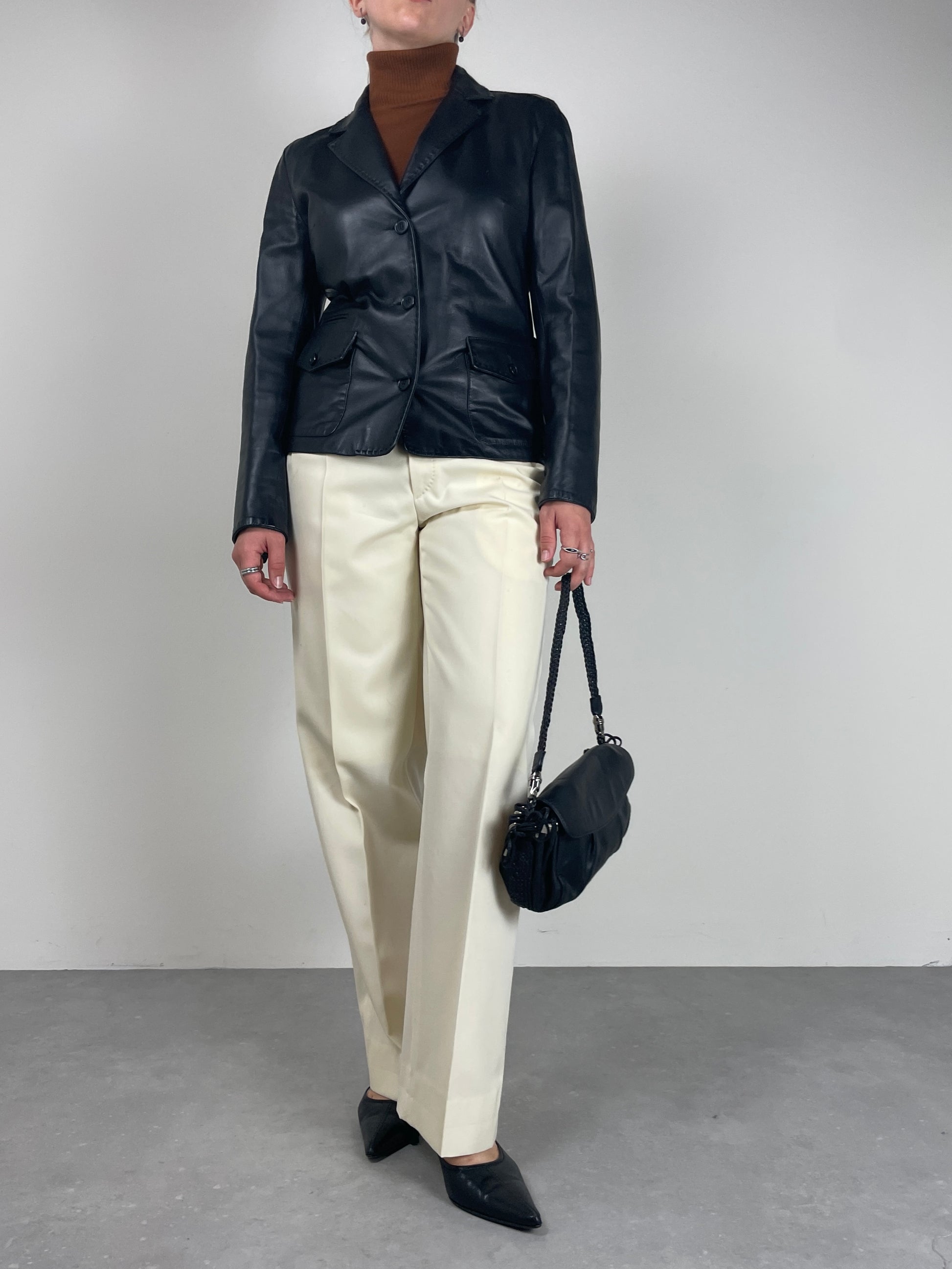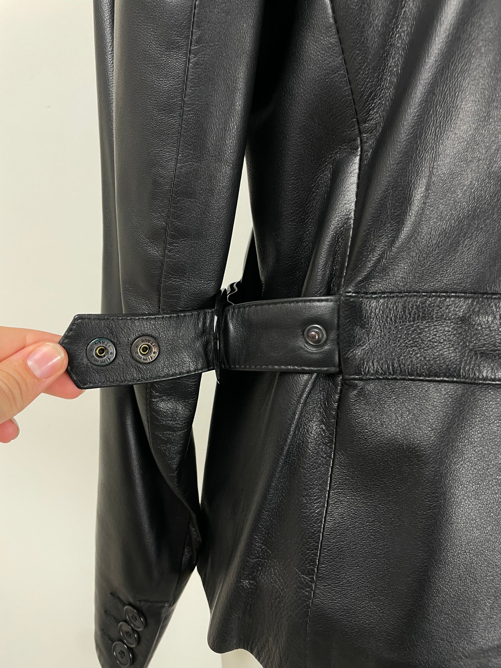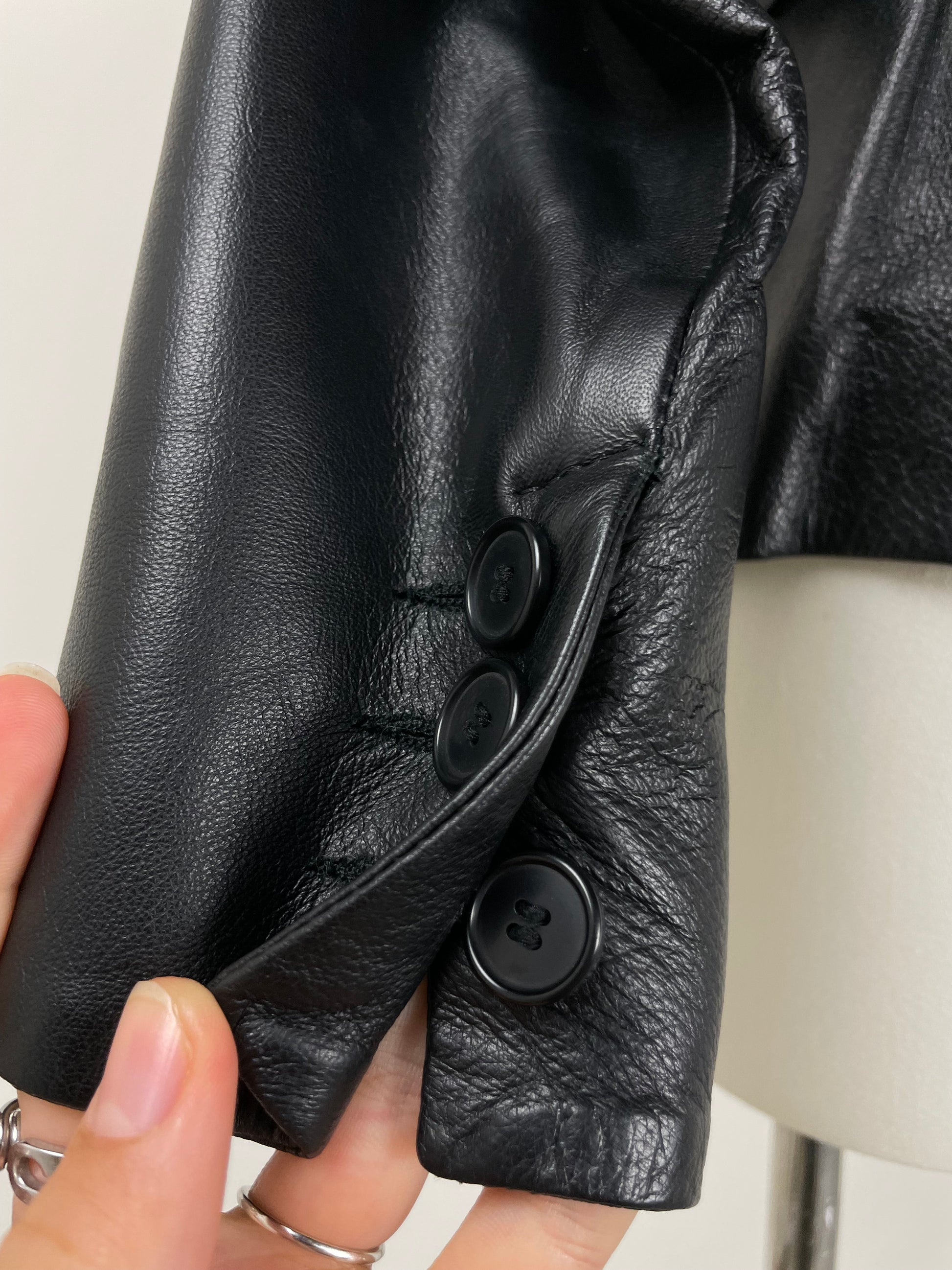 Blazer in vera pelle nera, vintage, di lusso, Made in Italy, realizzato in morbidissima lambskin di altissima qualità, con taglio sartoriale e finiture curate nei minimi dettagli.