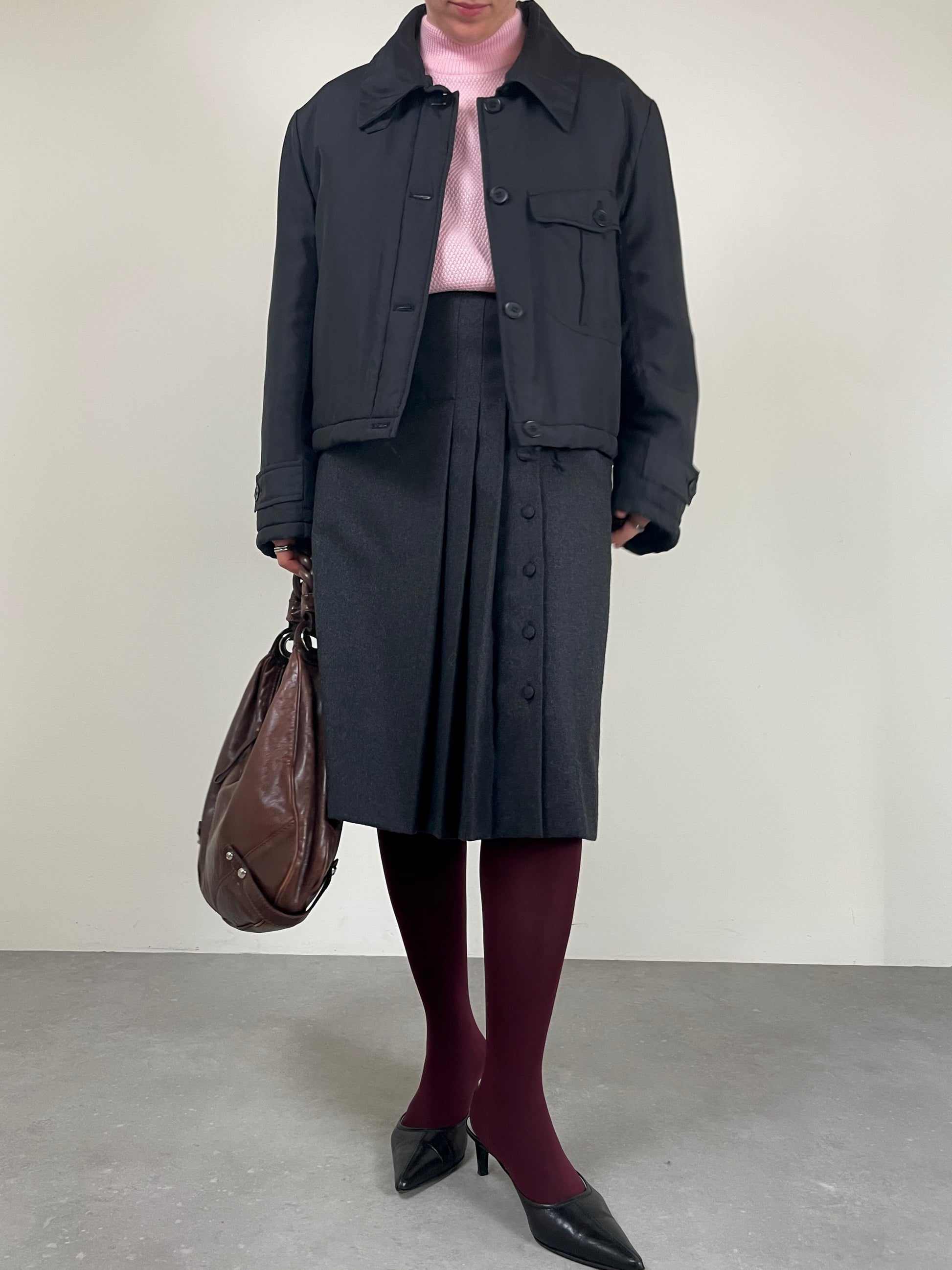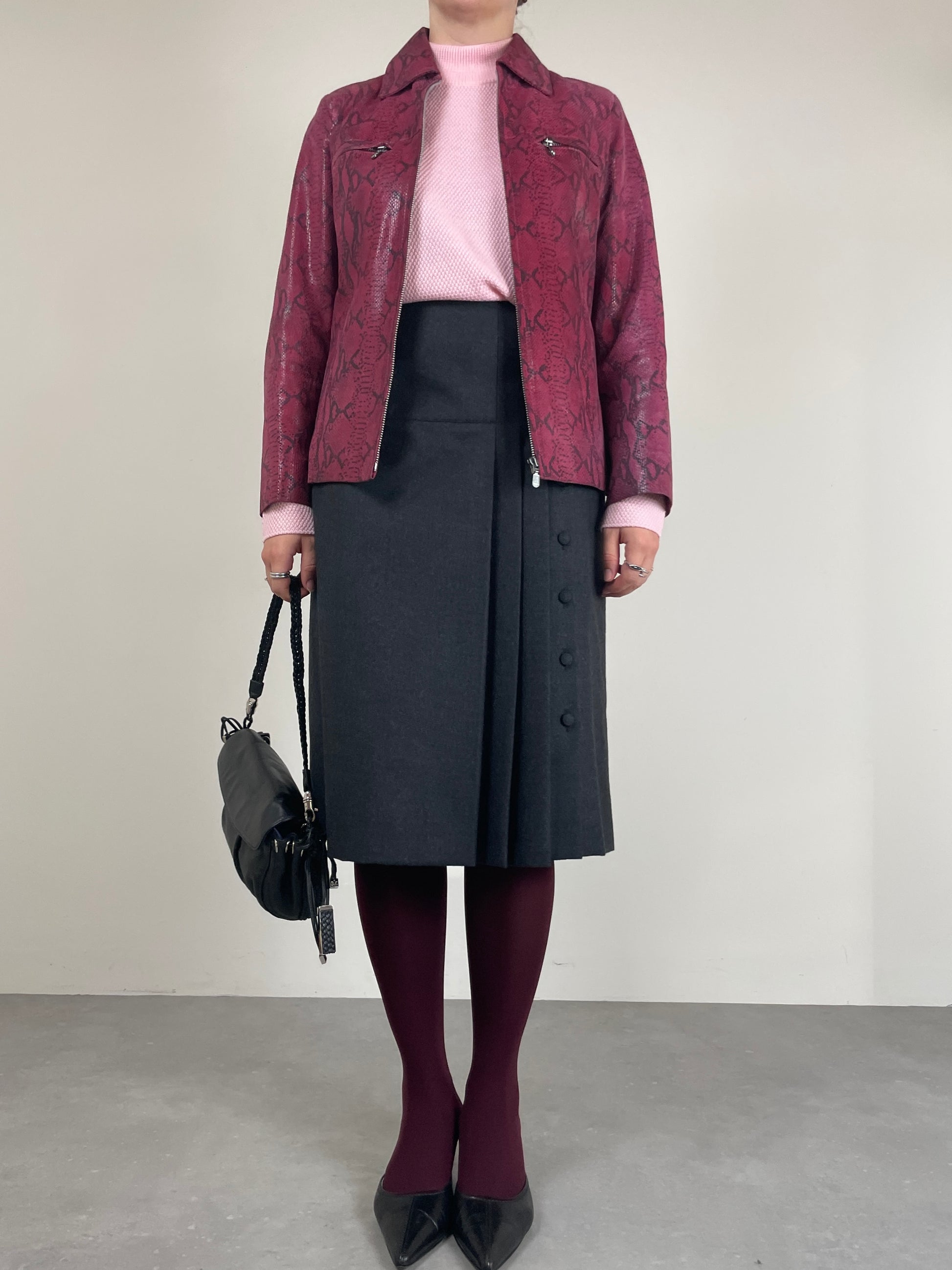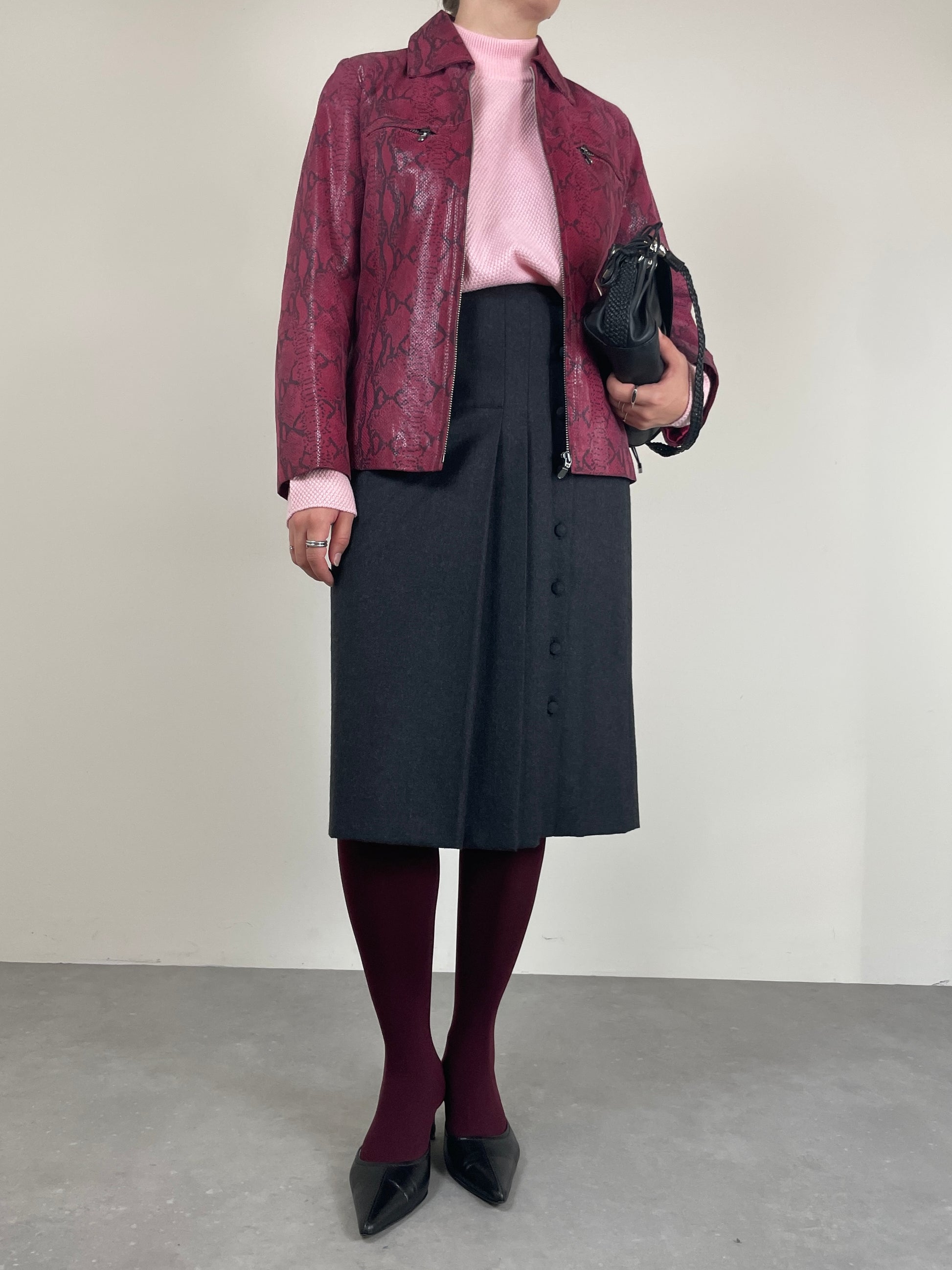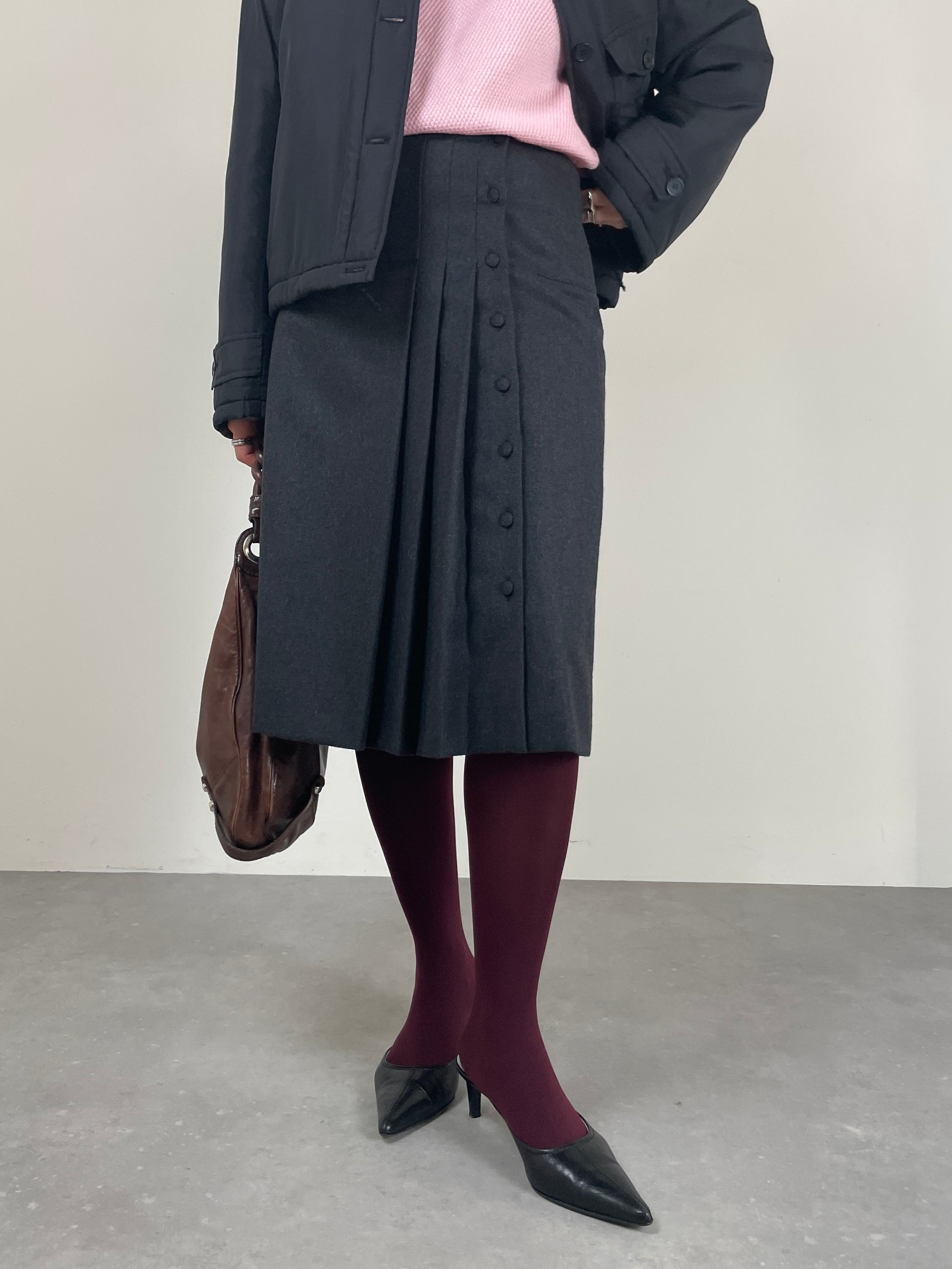Gonna vintage made in Italy in pura lana Scotland, con costruzione sartoriale e linea dritta leggermente svasata.