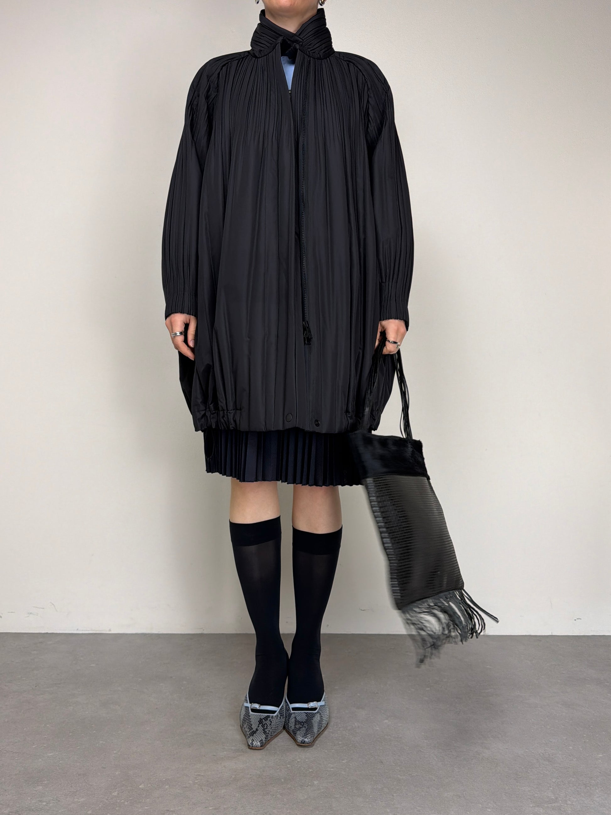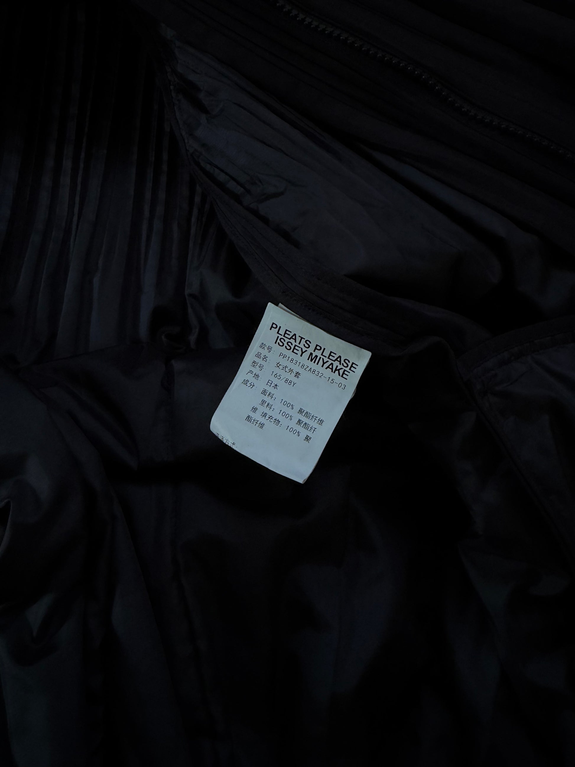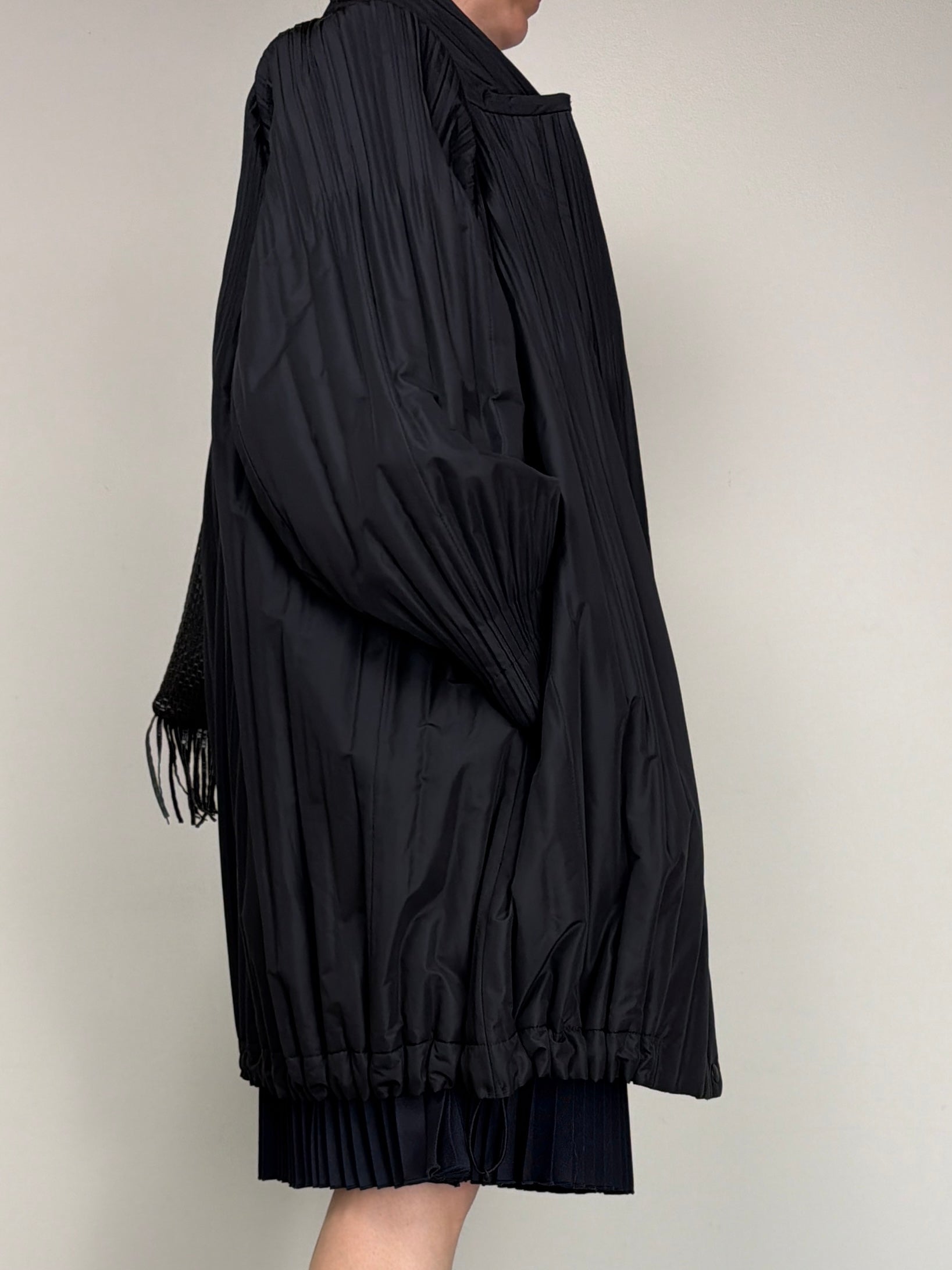 Pleats Please Issey Miyake piumino pre-loved in tessuto tecnico plissé, dalla costruzione ampia e volumetrica che richiama le iconiche lavorazioni del brand.