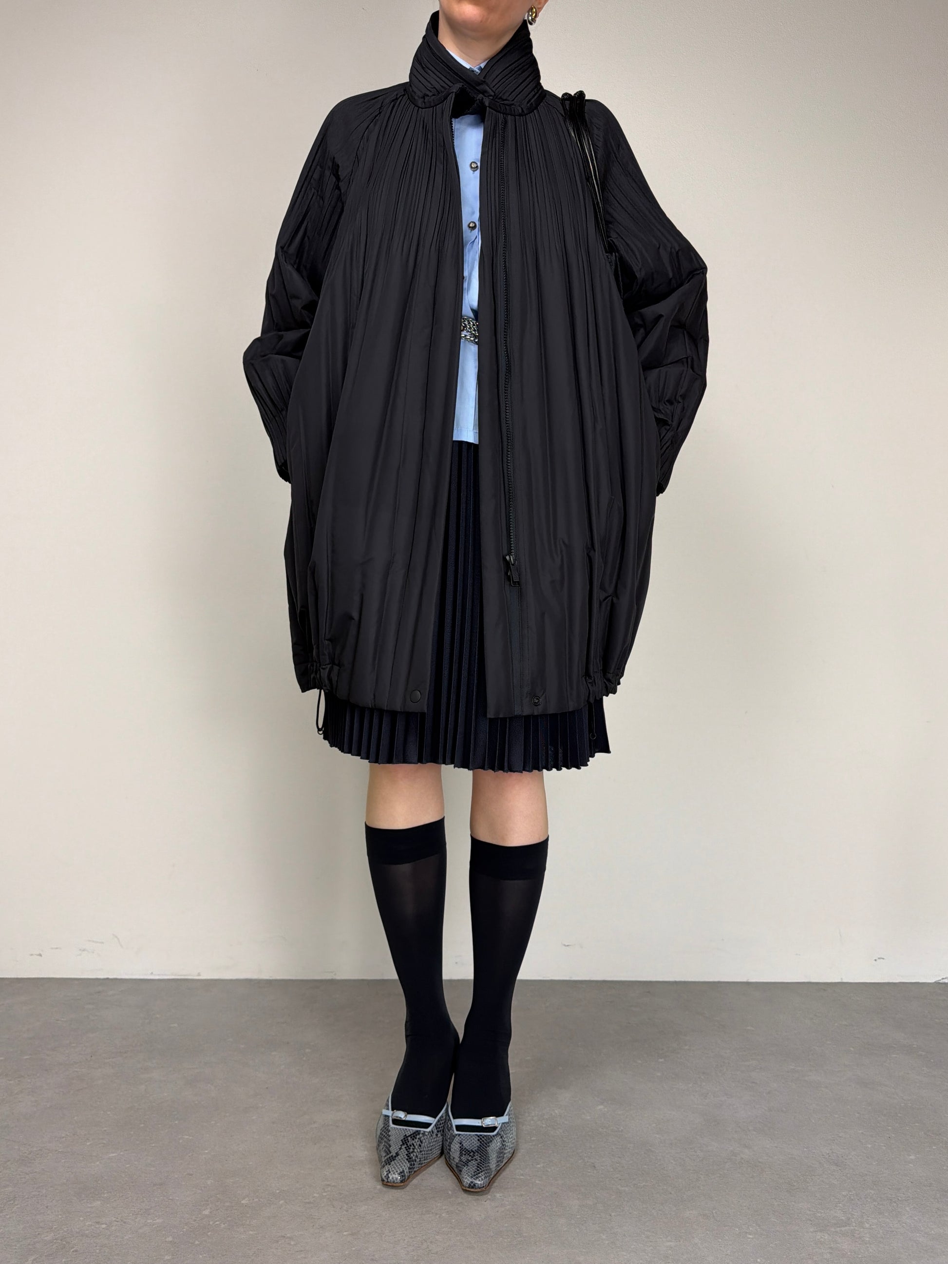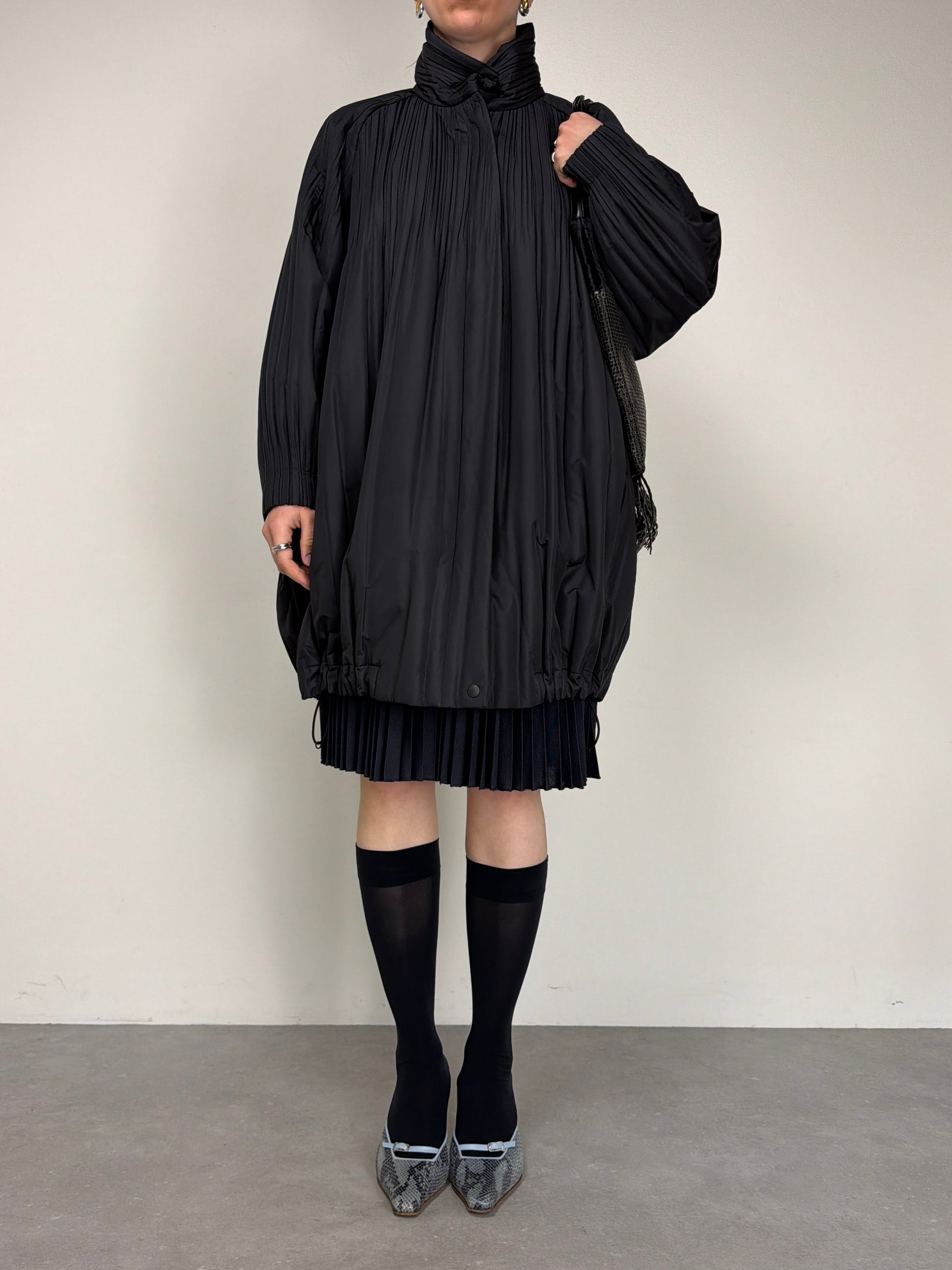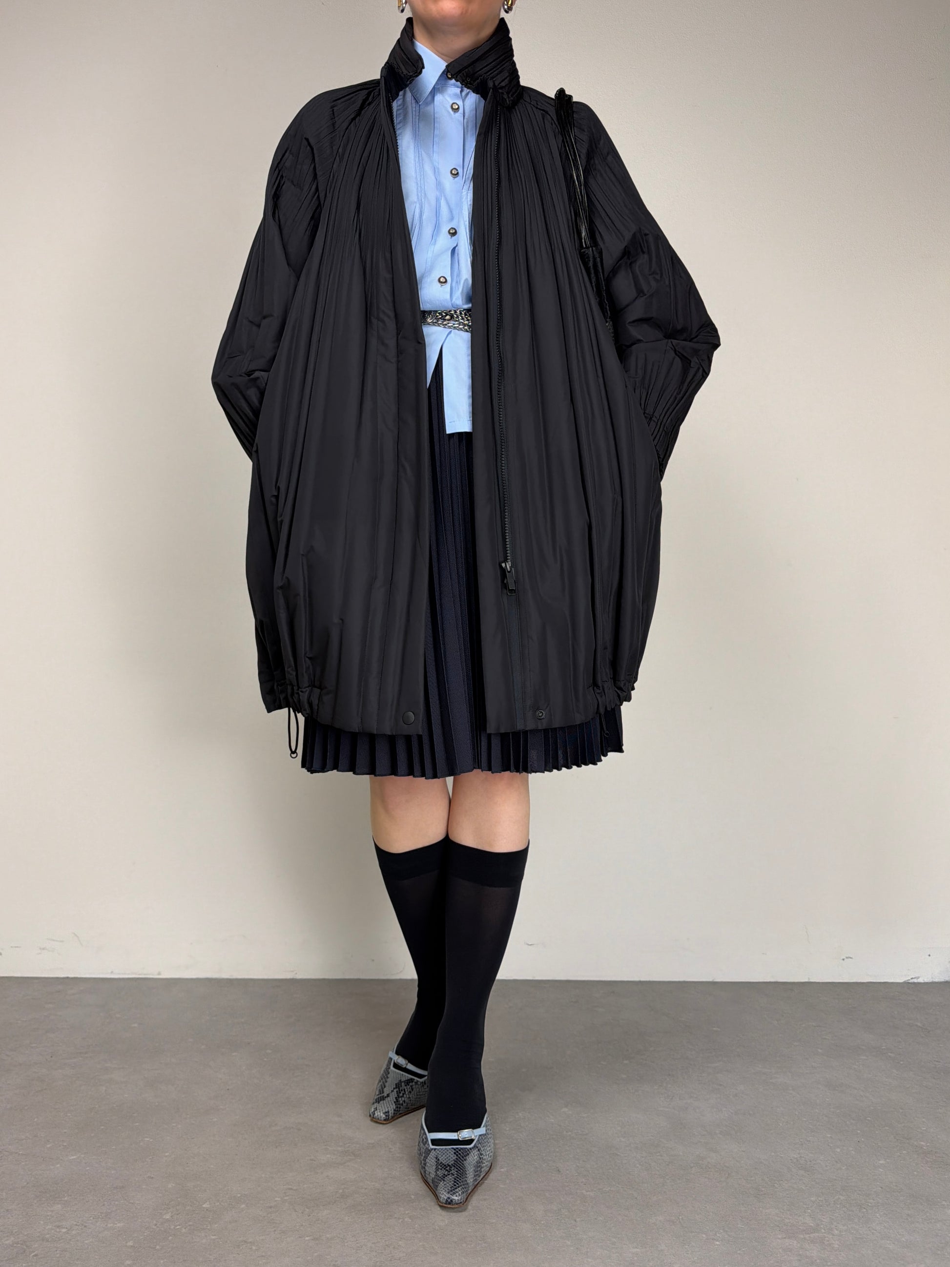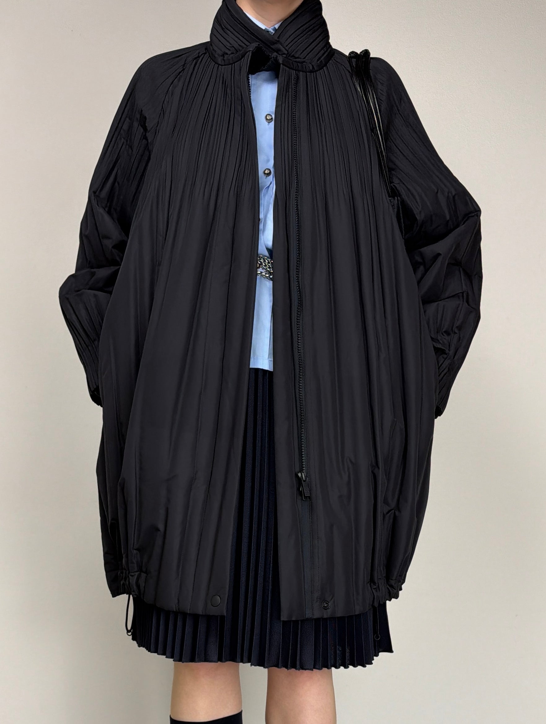 Pleats Please Issey Miyake piumino pre-loved in tessuto tecnico plissé, dalla costruzione ampia e volumetrica che richiama le iconiche lavorazioni del brand.