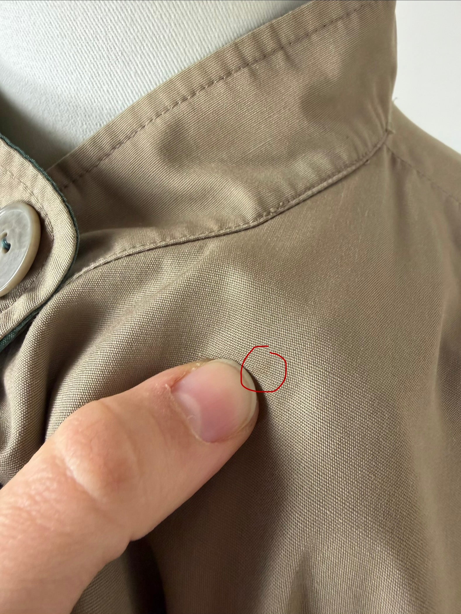 • chiusura centrale con bottoni: visibile sul lato verde con primo bottone nascosto, nascosta sul lato sabbia con primo bottone visibile