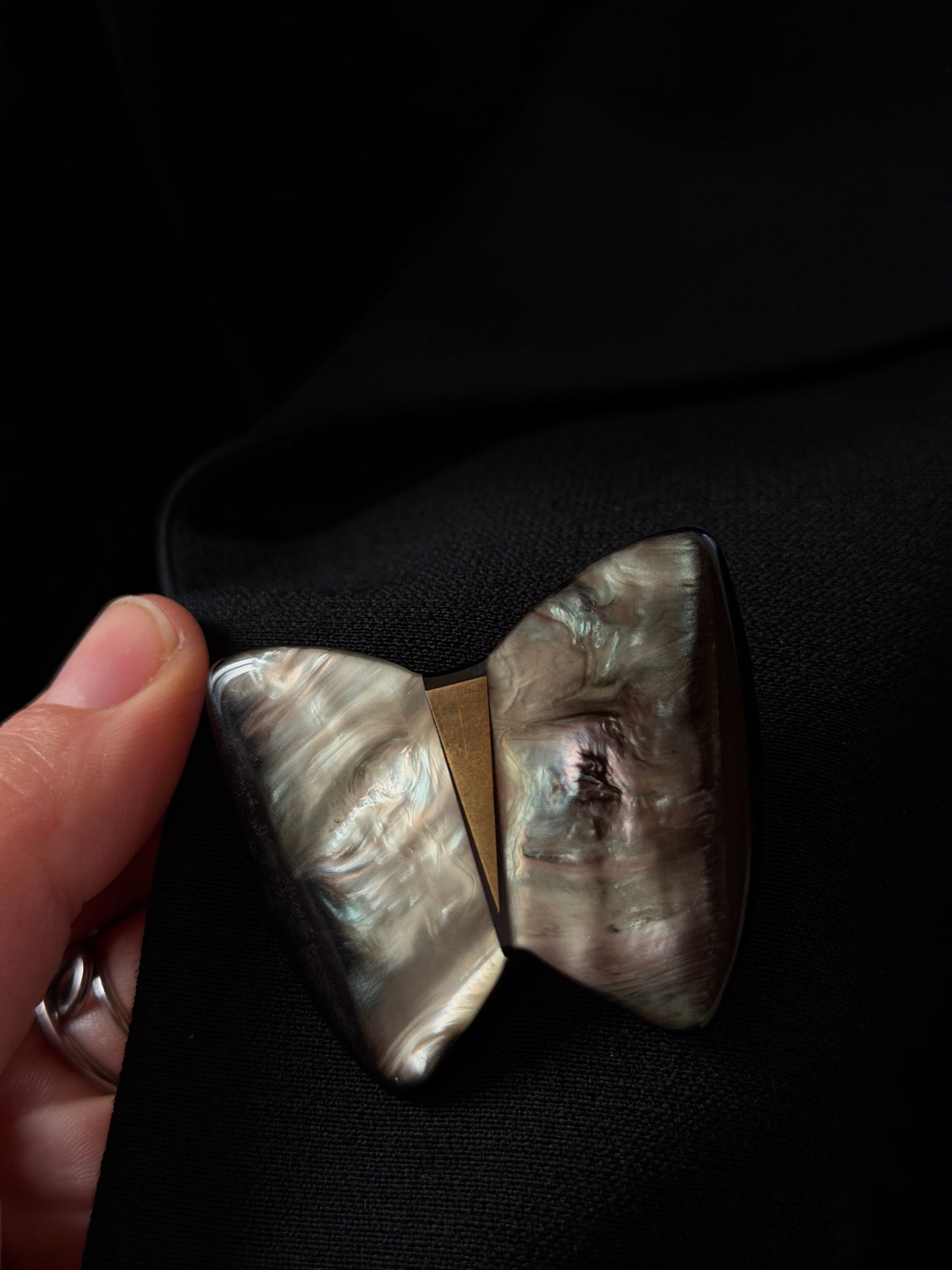 • Monopetto con un bottone a farfalla stilizzata effetto marmo