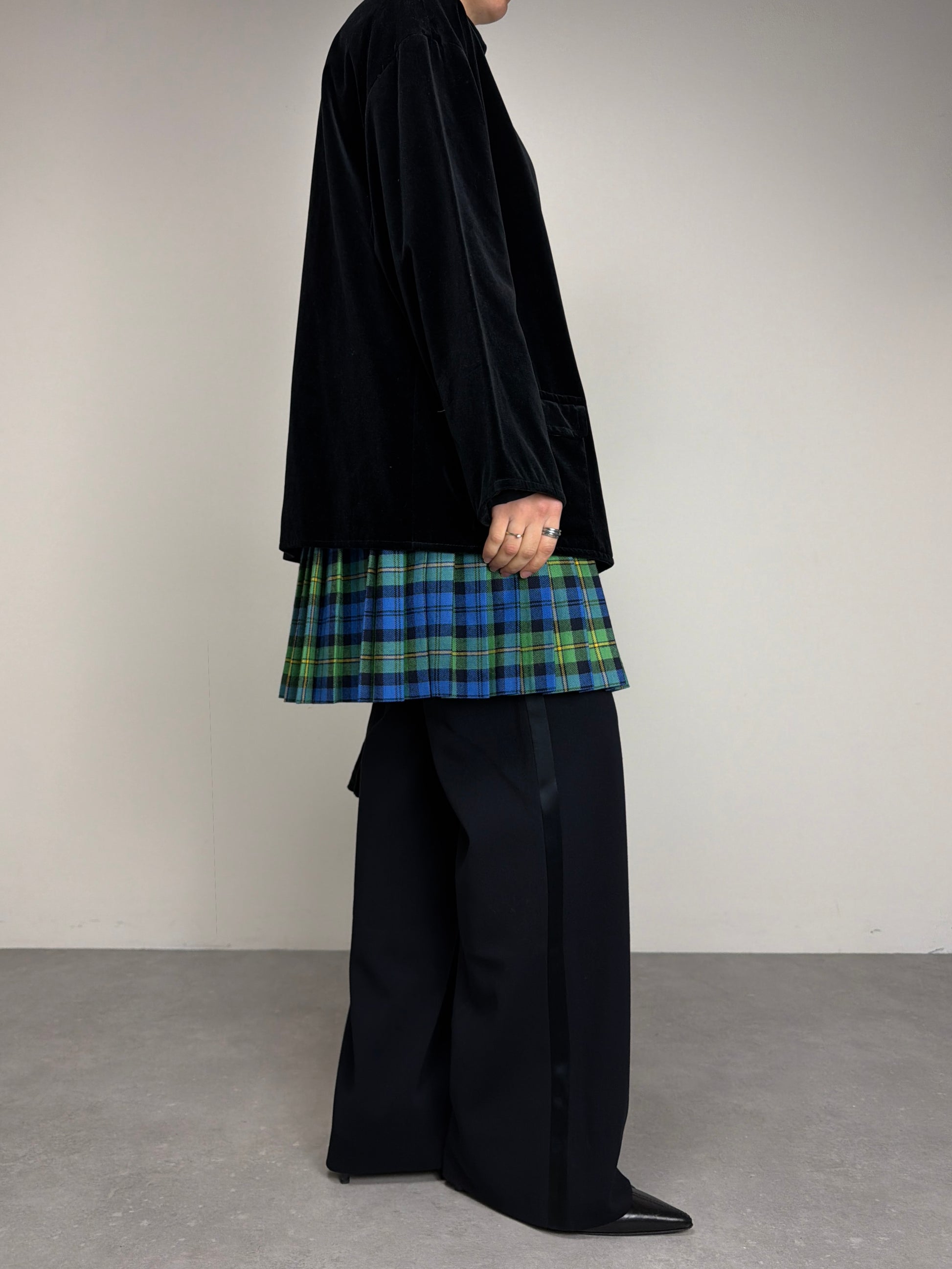 Giacca Vintage Made in Italy in velluto nero, linea over con costruzione morbida e spalle basse.