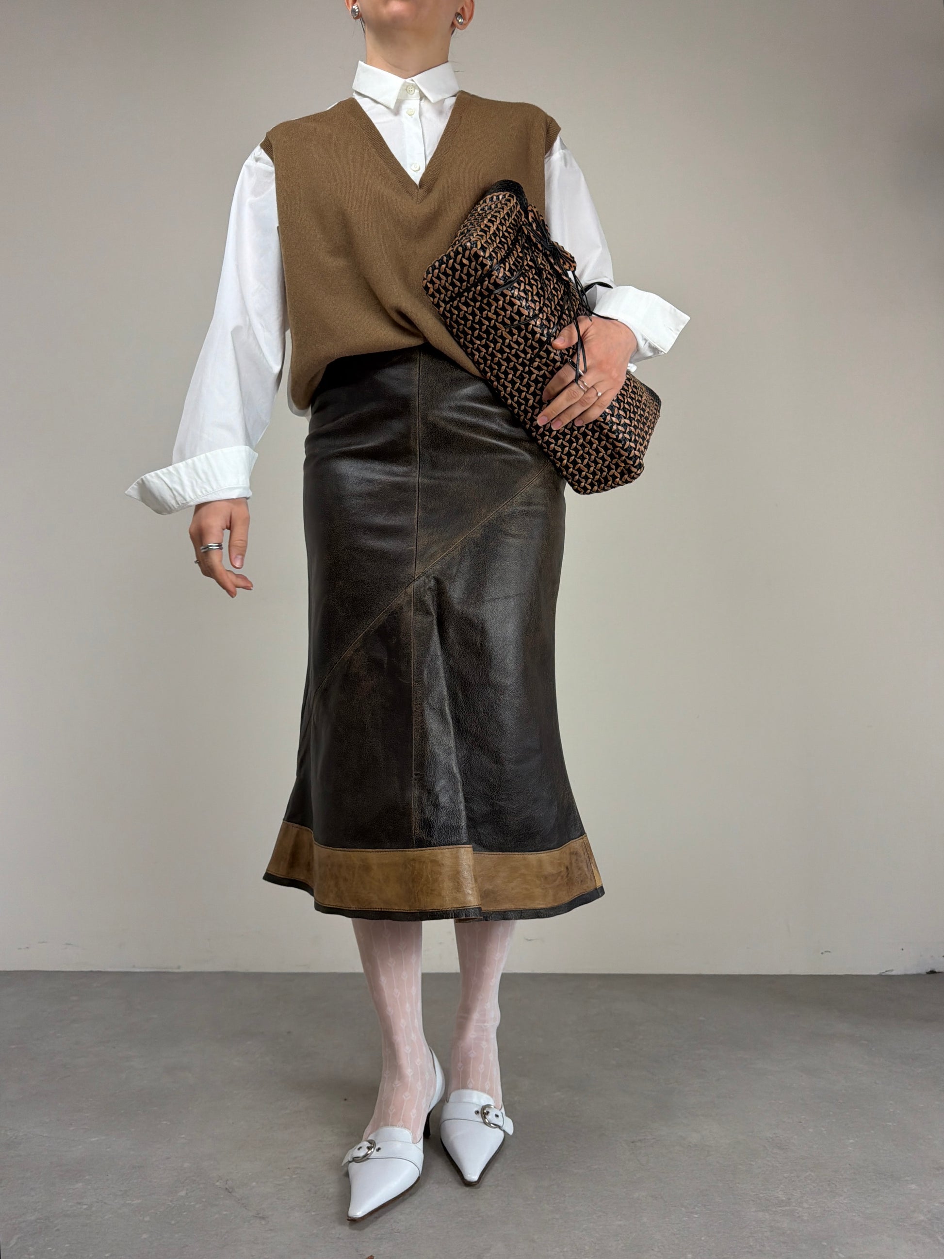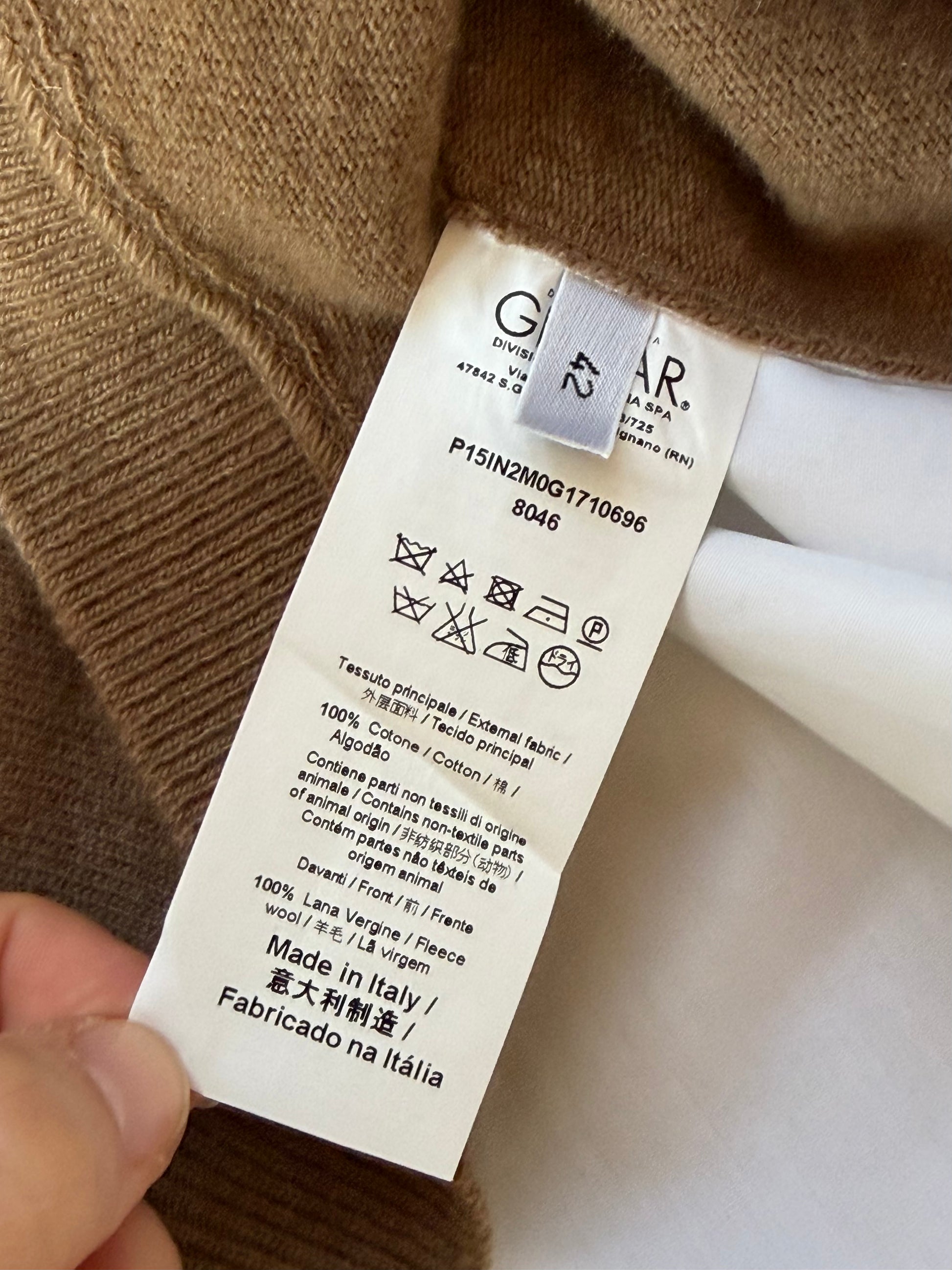 • Inserto frontale effetto gilet in lana color cammello
