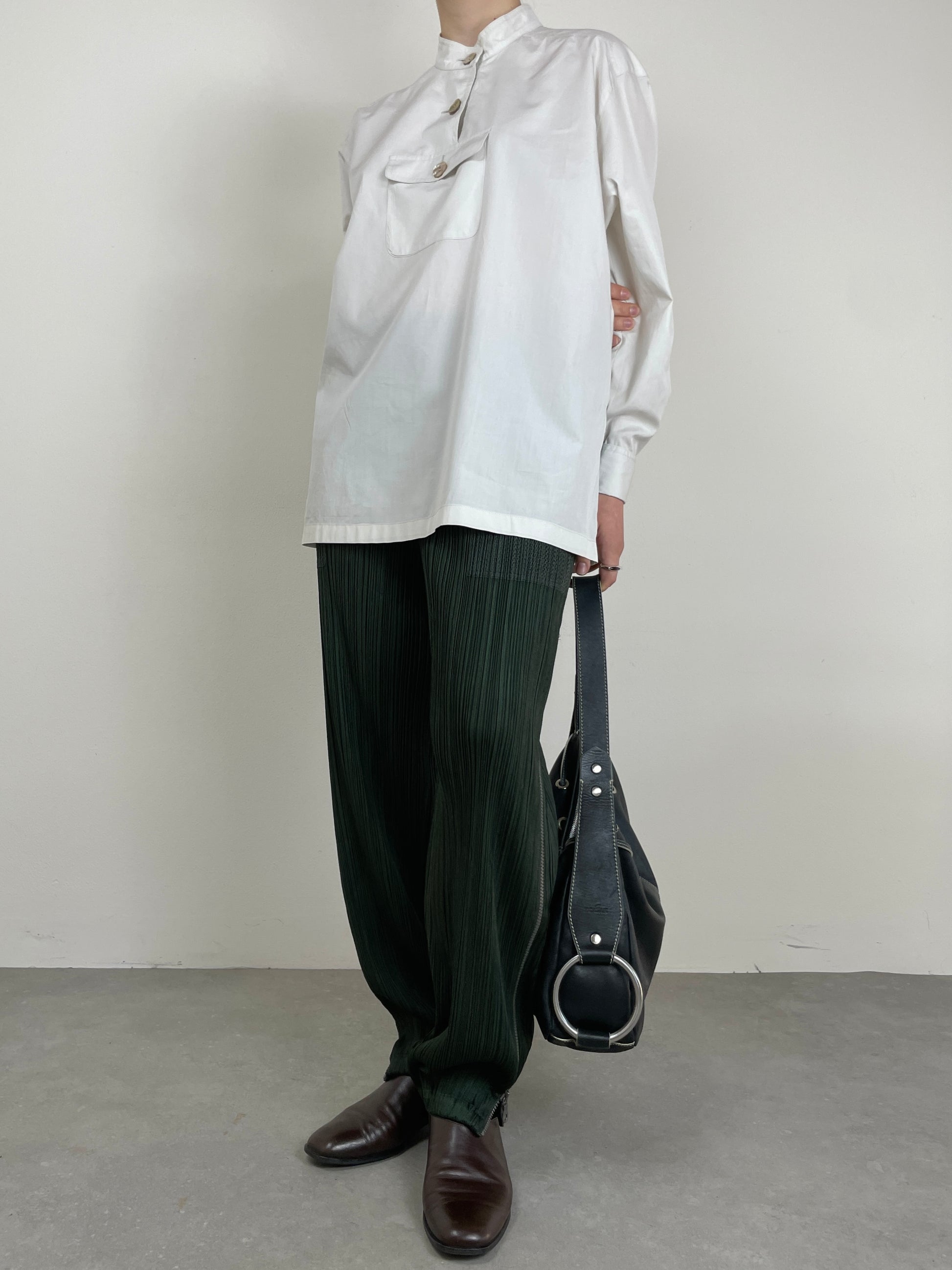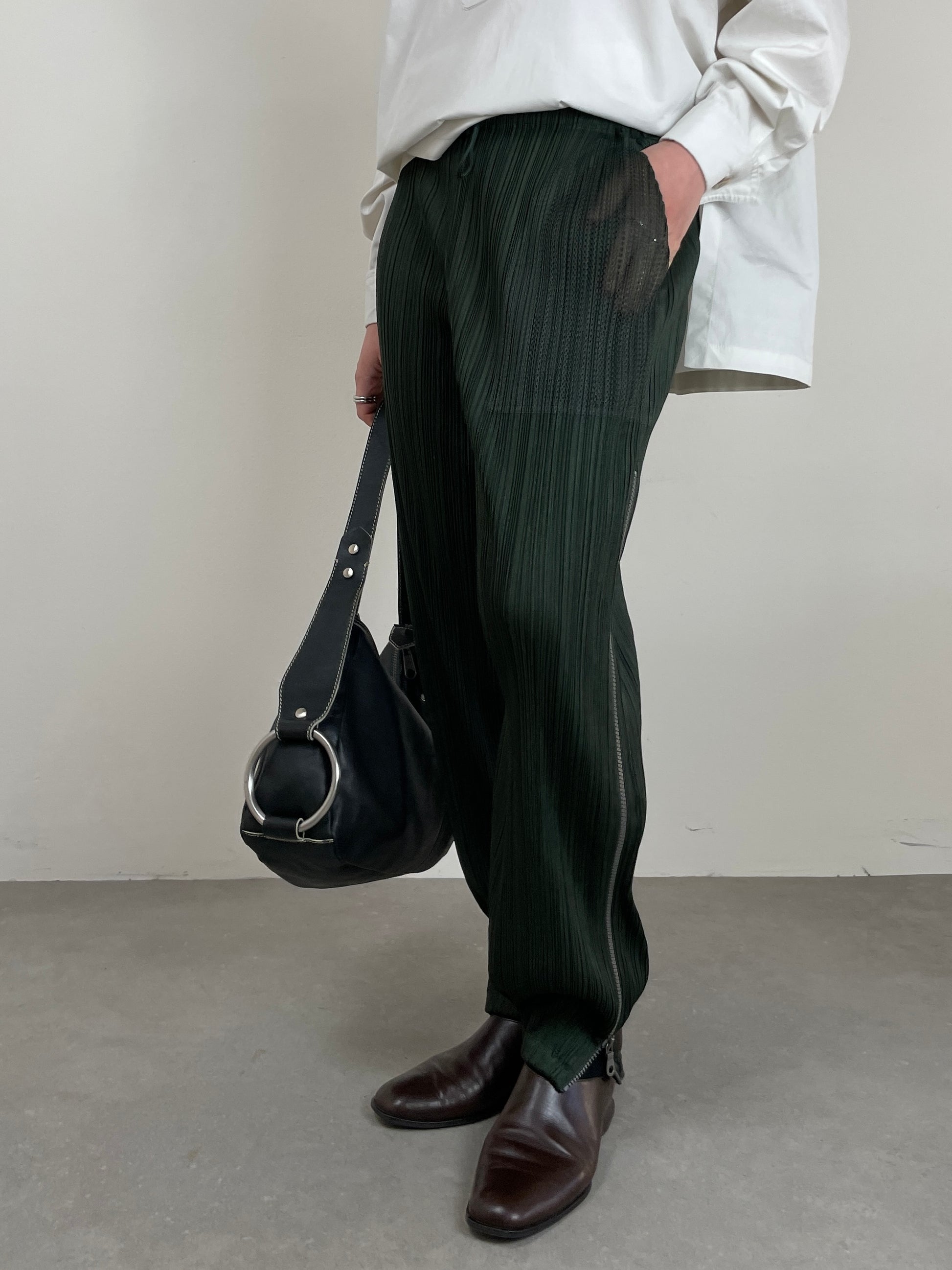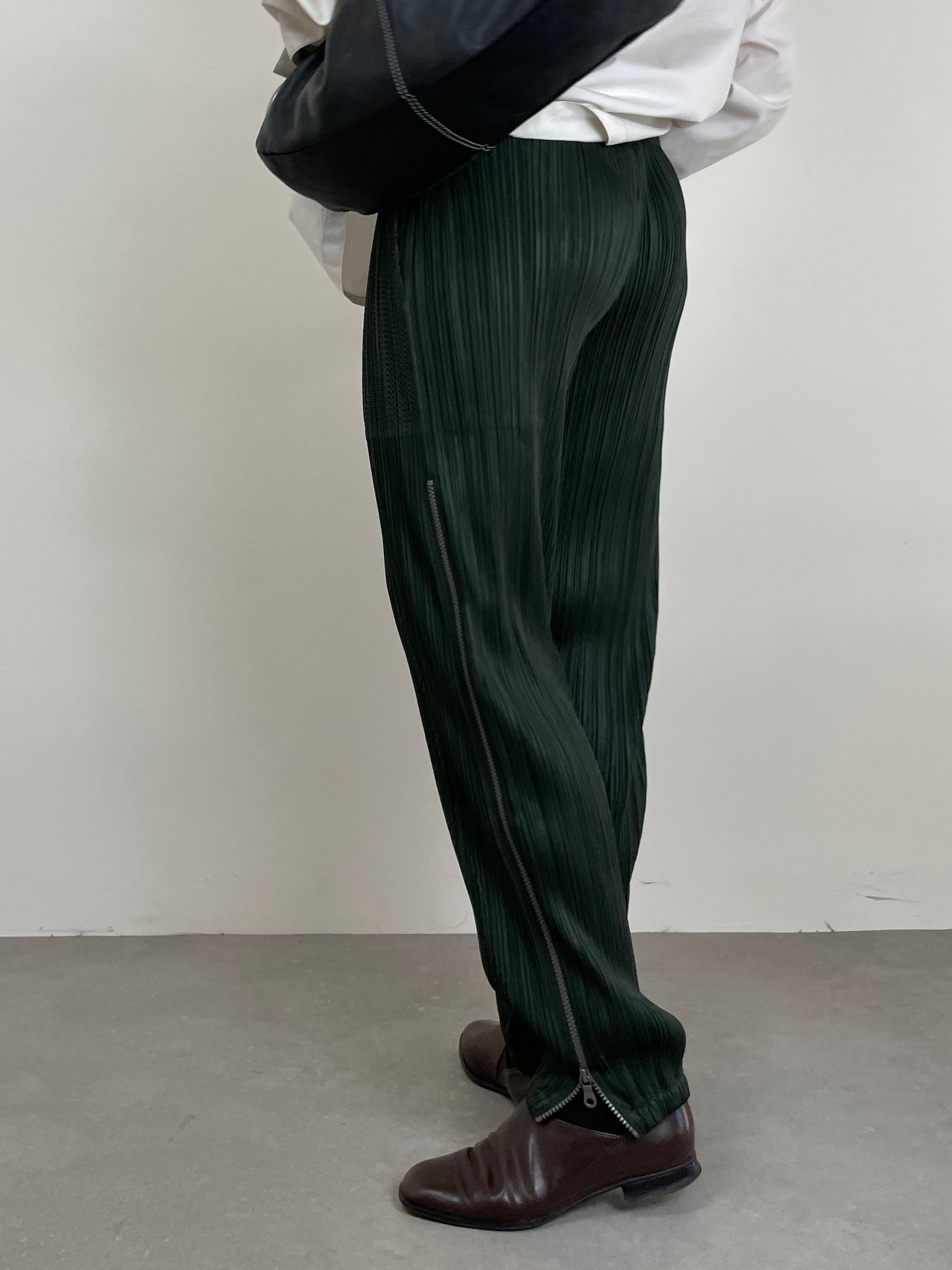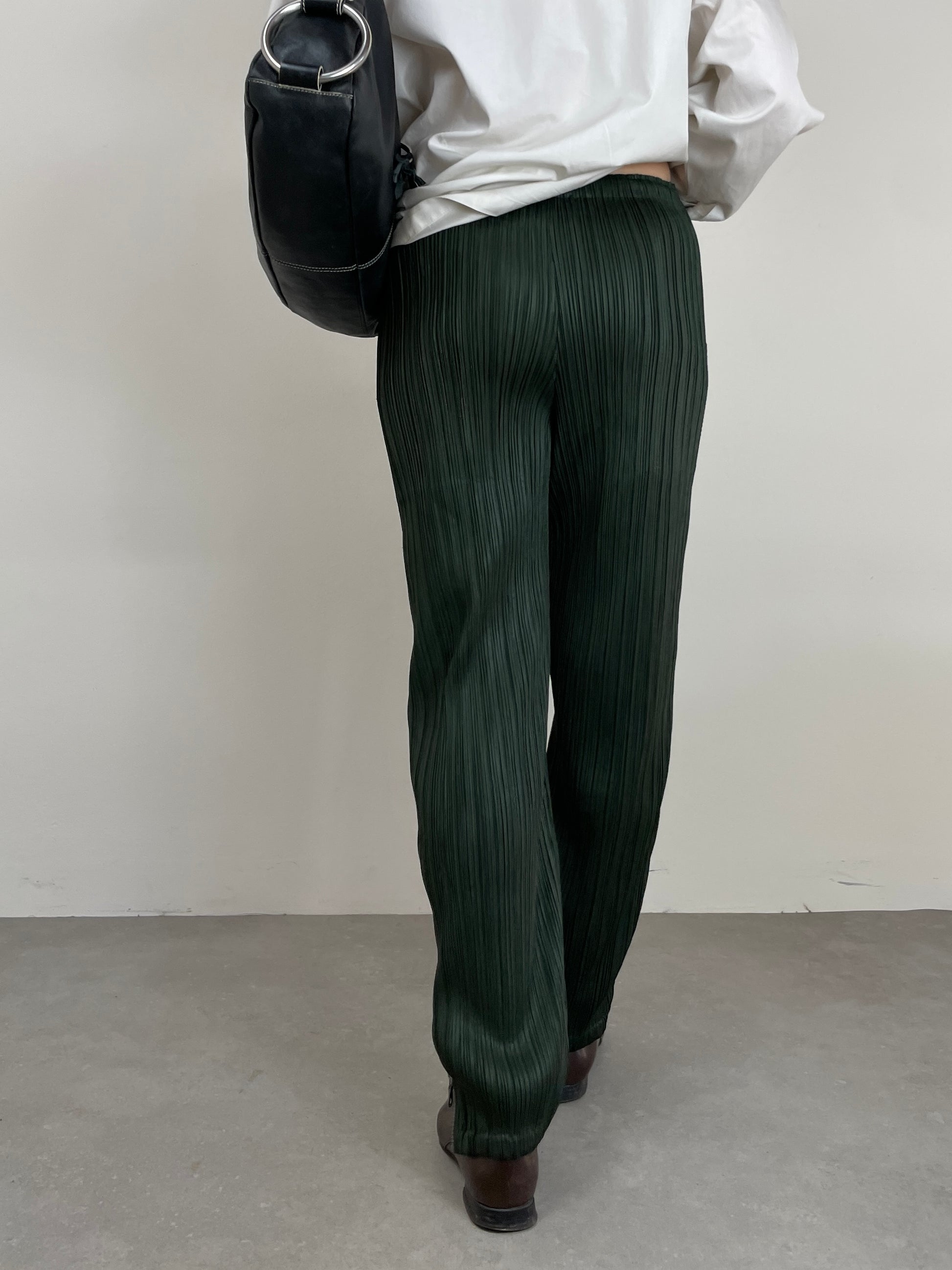 Pantaloni Pleats Please di Issey Miyake color verde pino.