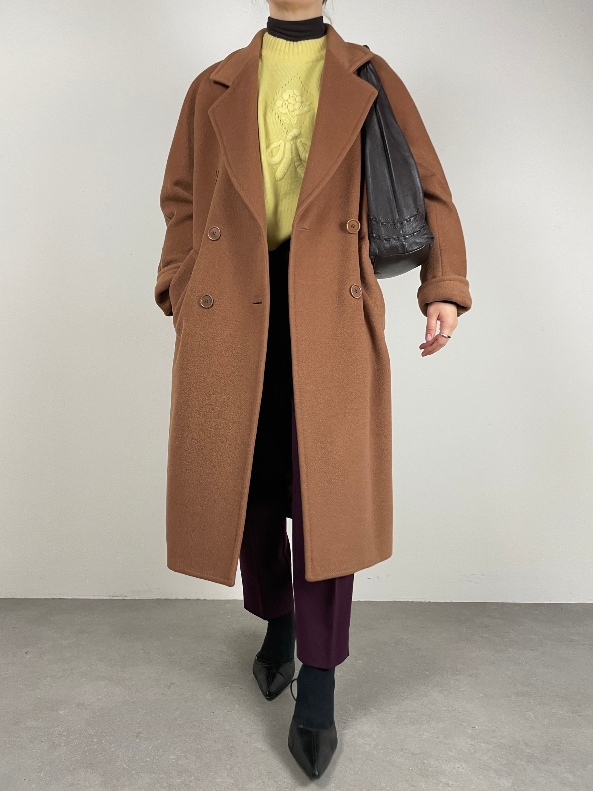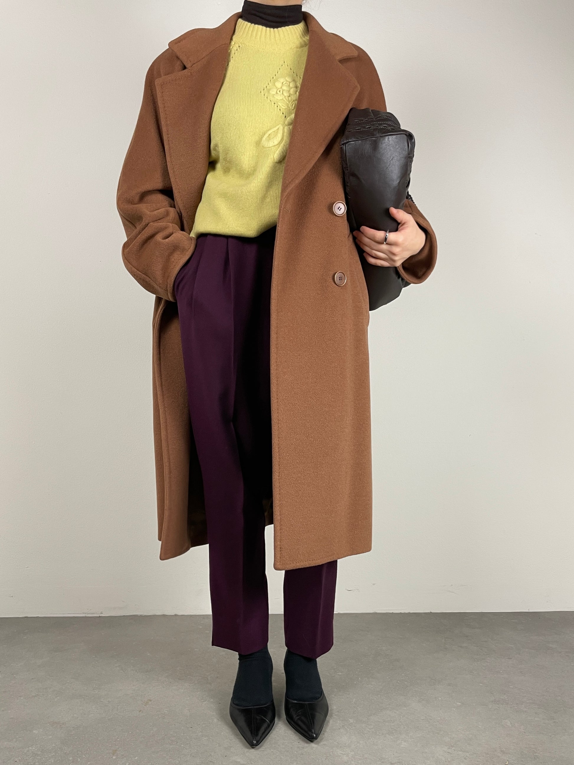 Cappotto vintage color biscotto, realizzato in un panno di lana, angora e cashmere.