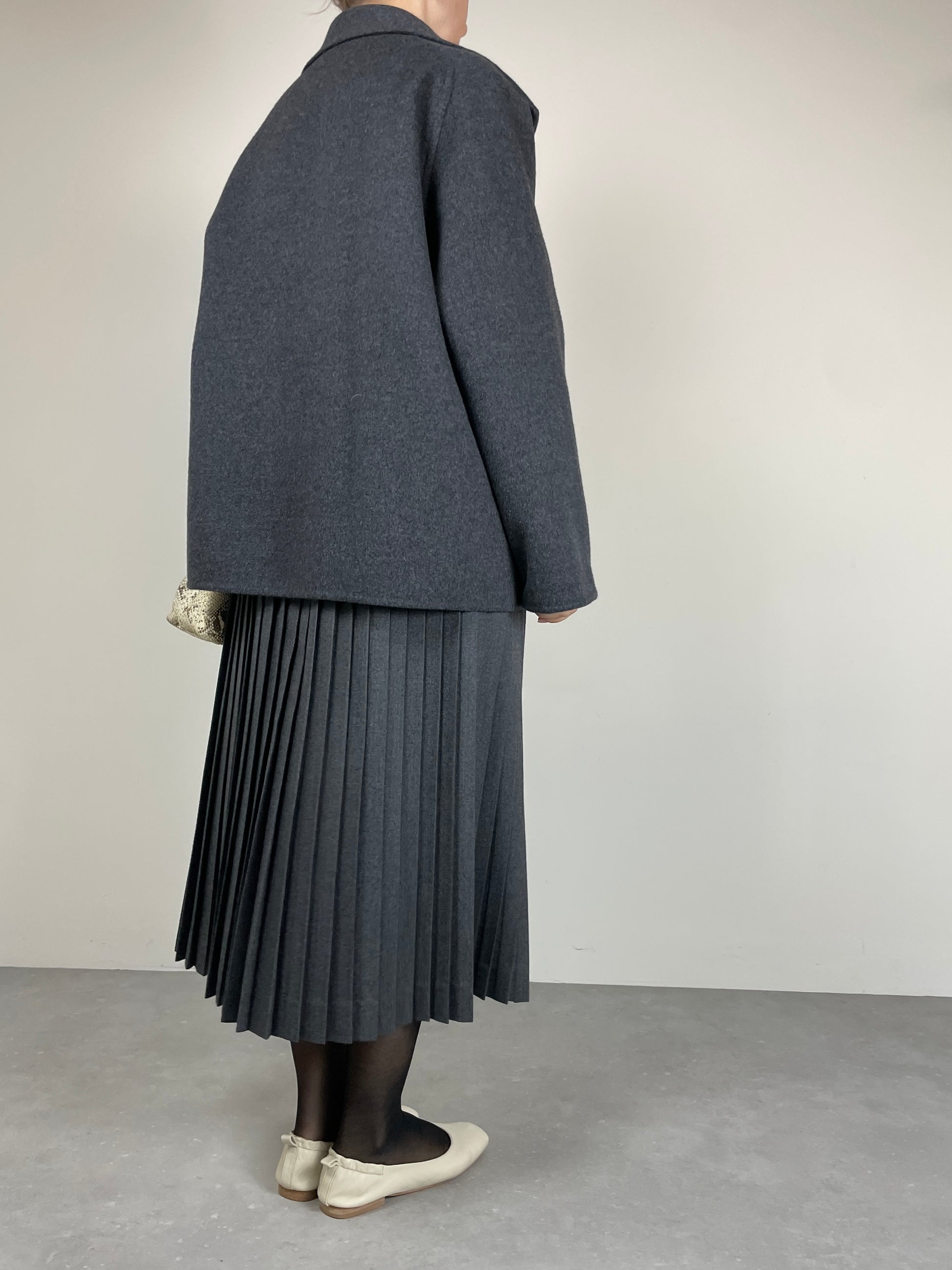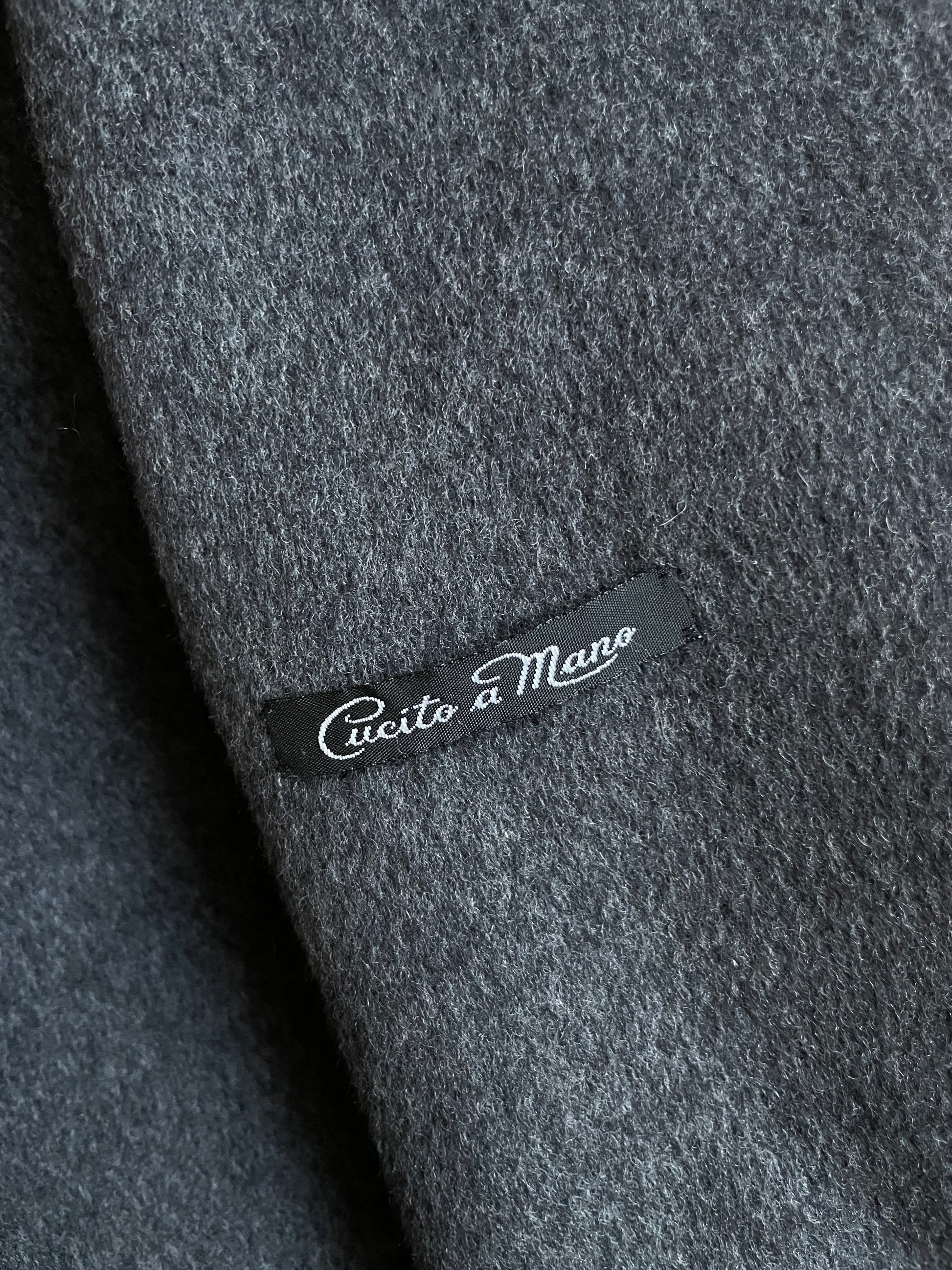 Giacca Max Mara in drap di lana e angora, doppiata e cucita a mano. Struttura morbida con maniche raglan dal tessuto morbidissimo e caldo.