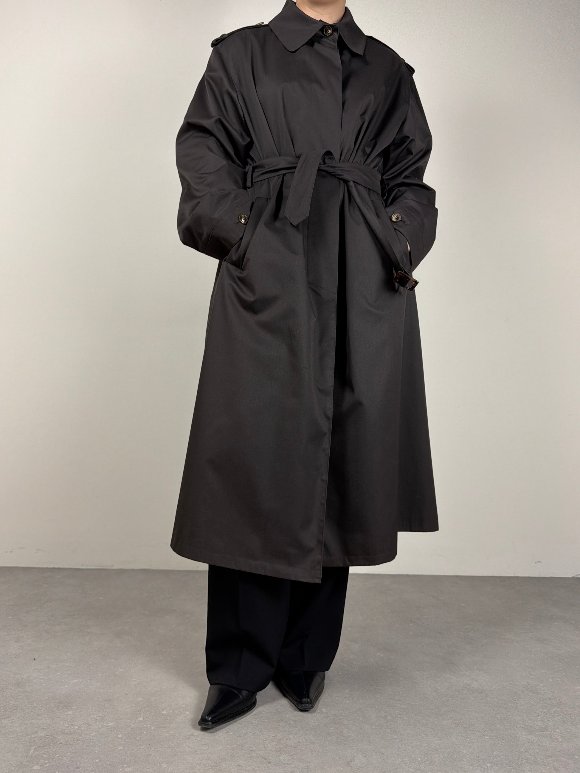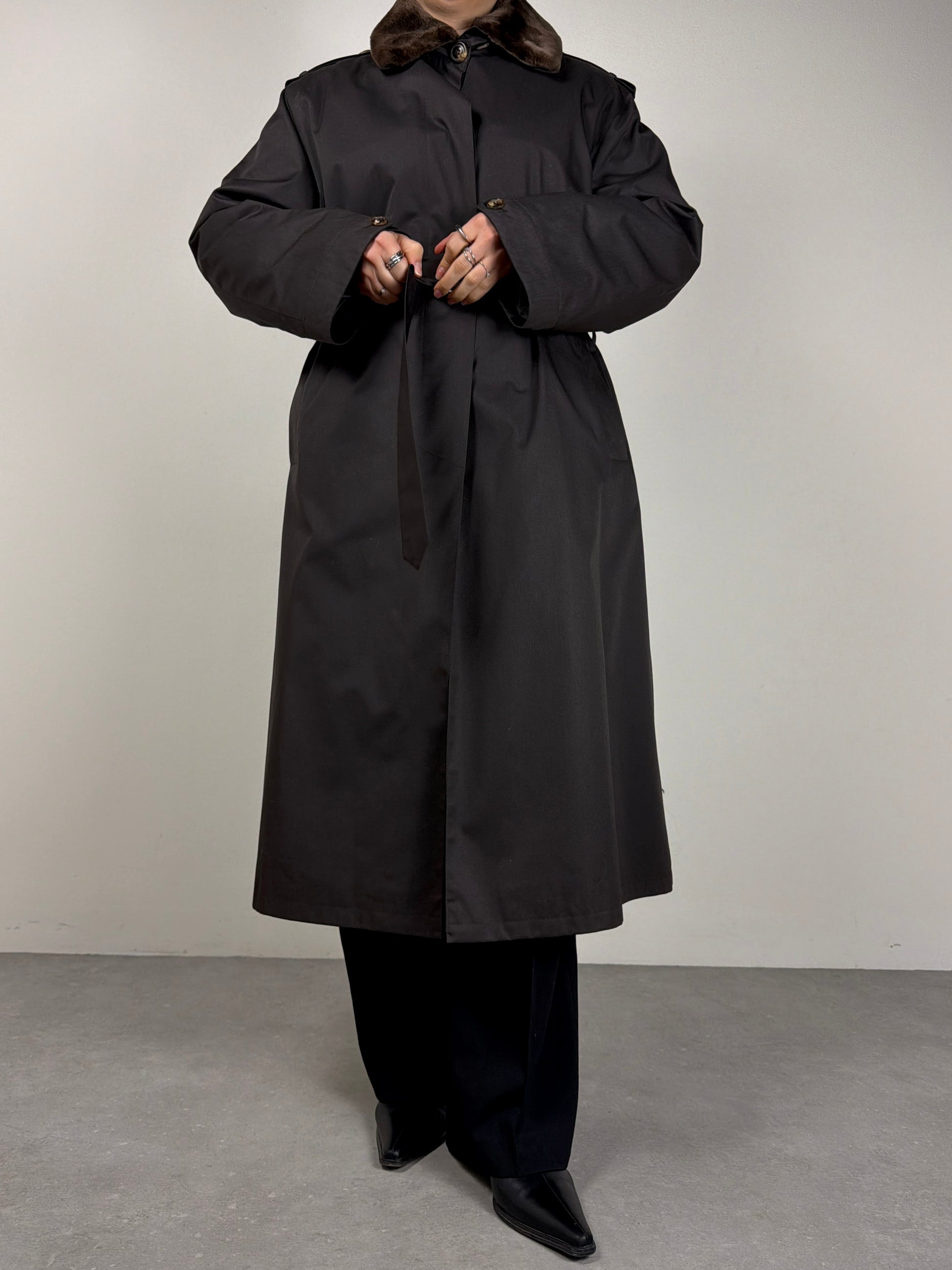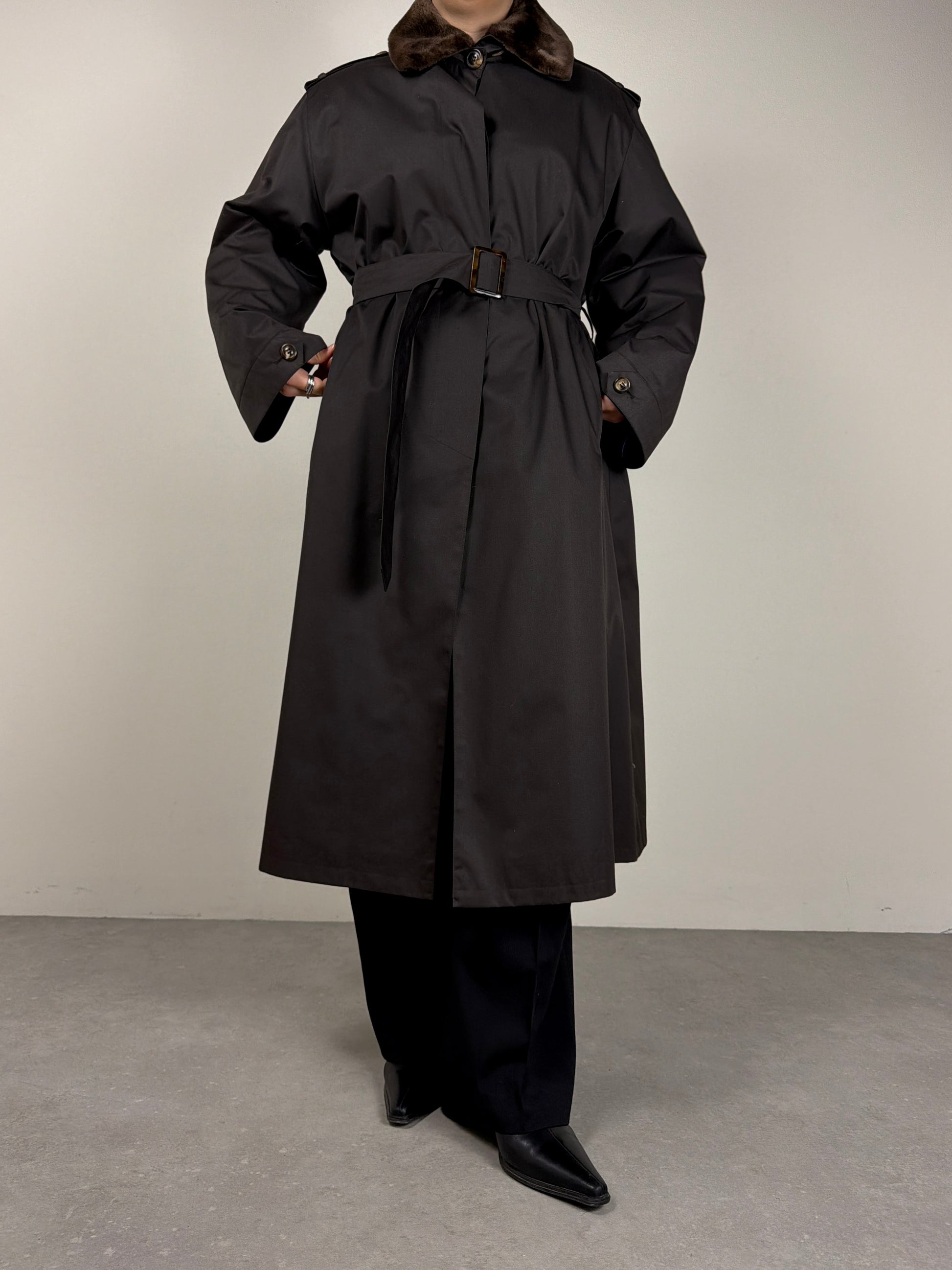 Trench vintage new old stock marrone, con l’interno staccabile in vera pelliccia lapin